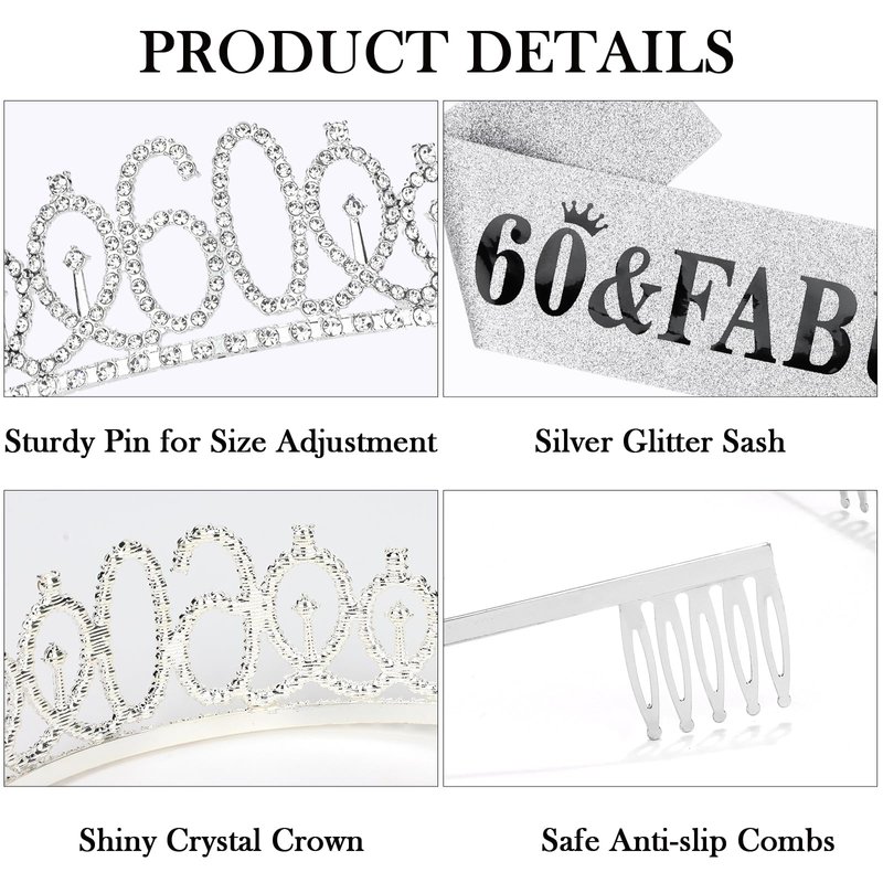 - 【Package Included】: The package contains "60 & Fabulous" birthday sash and 60th crown and a pearl pin. It's a great birthday gift for you. You will be like a queen in your birthday celebration.