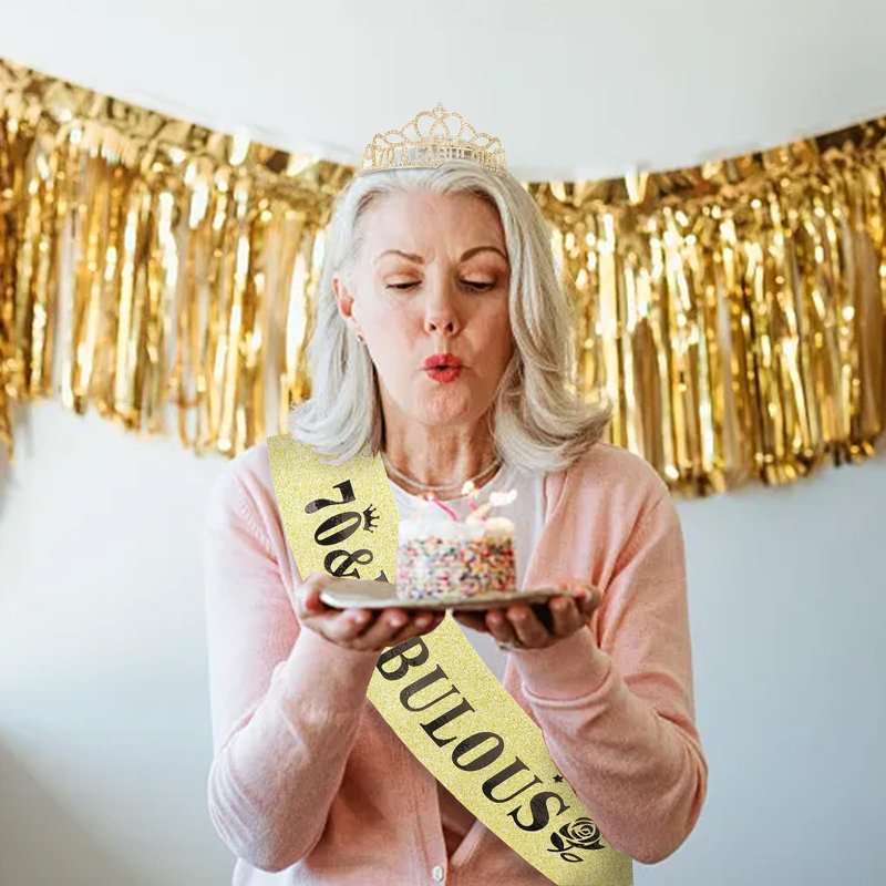 - Happy Birthday: Get the sash and tiara at the same time and be prepare for your 70th birthday party! We hope they can bring you a lot of happiness and leave unforgettable memories.
