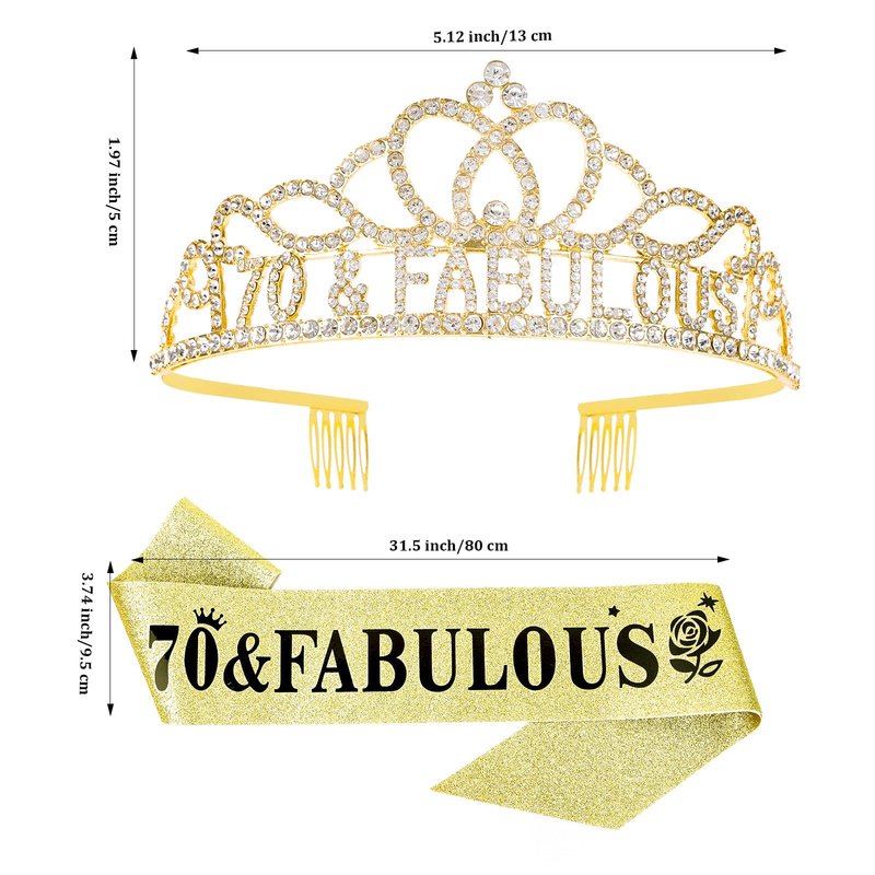 - Package Included: The package contains "70 & Fabulous" birthday sash and 70th crown and a pearl pin. It's a great birthday gift for you. You will be like a queen in your birthday celebration.
