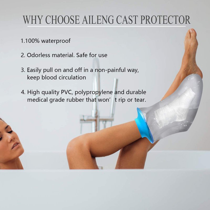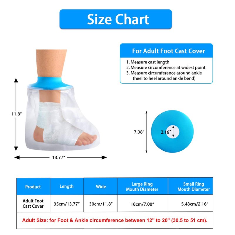 - Easy to Put on and Off: No retaining ring, soft and snug material makes this waterproof foot cast covers easily pull on and off in a non-painful way, keep blood circulation.Adult Size: for Foot & Ankle circumference between 12" to 20" (30.5 to 51 cm).