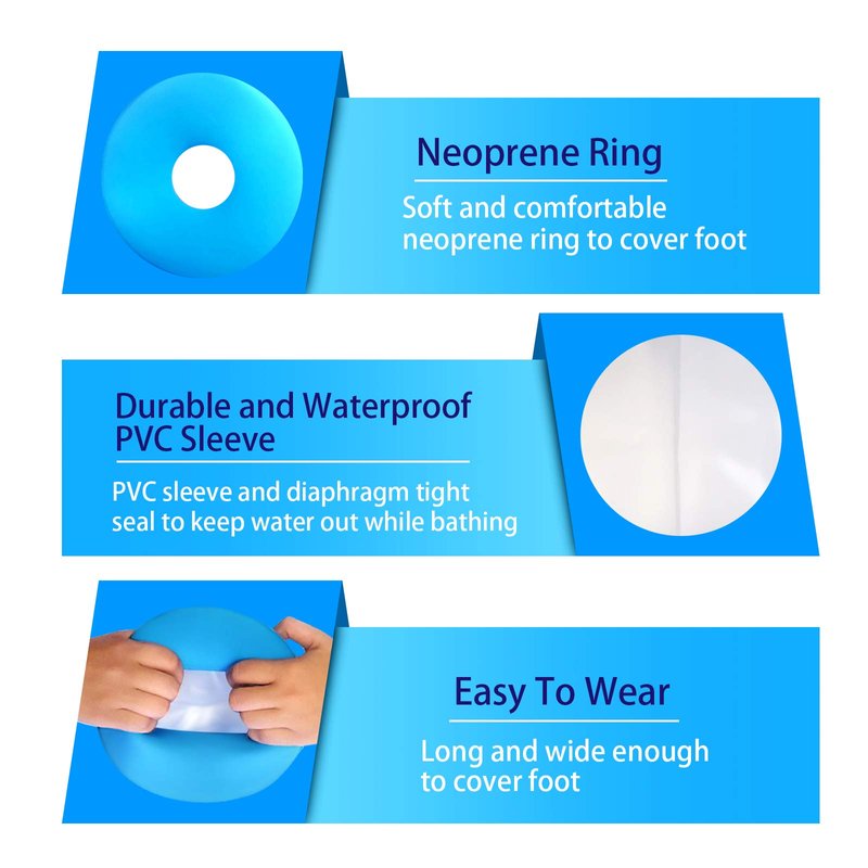 - High-quality & Stretchable: The seal circle is made with medical-grade silicone materials and stretches easy to accommodate most size foot for men and women. Can be used for showering, bathing or outdoor activities when recovering from injuries, surgeries, accidents,or when suffering from medical conditions such as cuts, rashes, burns, skin problems, wounds & scratches.