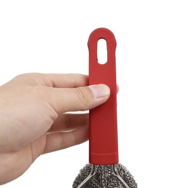 - DISHWASHER SAFE and EASY TO DRY - Fully immersible, hand and dishwasher safe, just like a turner. The hang hole of the silicone handle can be used to hang and air-dry or for small-footprint storage, so there is no damage or harmful build-up on your countertop, dish tray or kitchen shelf. Put some detergent and wash the chainmail cleaner with warm water, you will find a brand new cast iron scrubber!