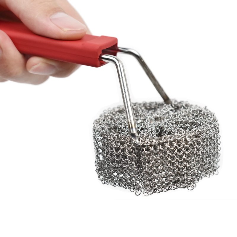 - ERGONOMIC DESIGN - 4 in 1 pattern and all rings welded closed with other rings, what means the chainmail scrubber willl never fall apart in daily use. The handle design for a better grip, these cleaners keep your hands away from the chain mail leading to less fatigue. The easy on the hands, flexible chainmail scrubber gets into any corner or crevice and is suitable for all cookware: pots, pans, grills, griddles, even BBQ mesh.