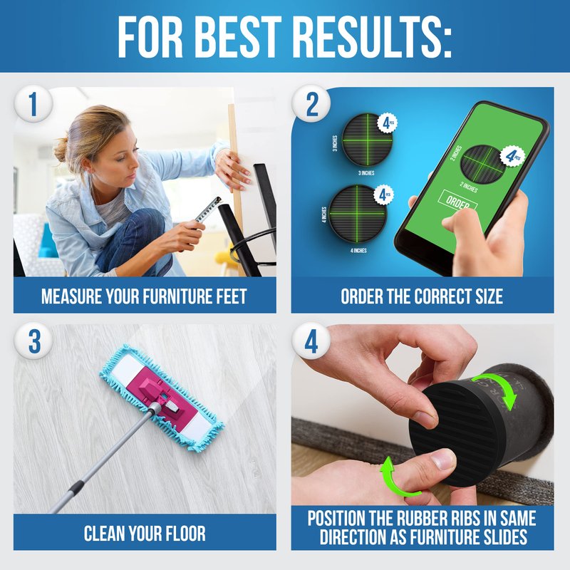 - Non Slip Furniture Pads: Our furniture coasters feature anti-slip flexible rubber with small ribs, providing exceptional grip. Whether it's couches, bed, chairs, or tables, these furniture stoppers prevent sliding and hold them steady, even with kids or pets jumping around