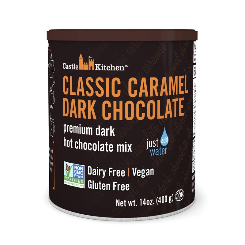 Castle Kitchen Caramel Dark Chocolate Hot Chocolate - Dairy-Free, Vegan Premium Hot Chocolate Mix - Just Add Water - 14 oz