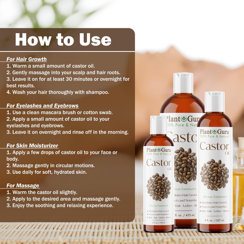 - ✅ VERSATILE BEAUTY ESSENTIAL - From head to toe, our castor oil is a multipurpose beauty solution. Use it as a scalp treatment, lash and brow serum, or an all-over body moisturizer for a complete beauty boost.