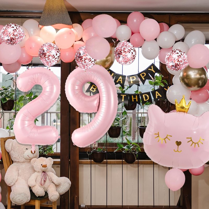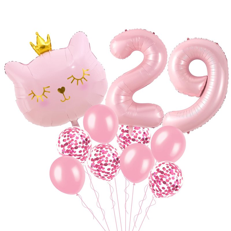 Cat Birthday Decorations, Cat Balloons, Pink 29 Balloon Numbers 40 inch, Cat Themed Birthday Party Decorations, 29 Balloons for Girls Birthday Party Decorations