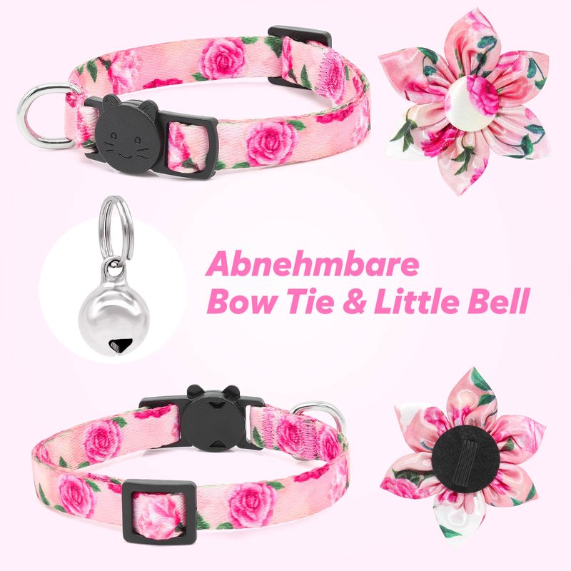 Cat Bowtie Collar Floral Rose Flower Cat Collar with Bells Breakaway Kitten Collar Halloween Cat Collar Puppy Collar Pink Cat Collars for Girl Cats