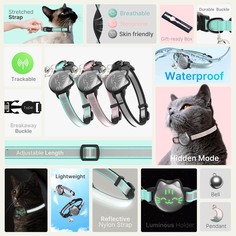 - 【ULTIMATE PET TRACKING】The Typecase Waterproof Air tag cat collar is designed to seamlessly integrate with Apple Airtag technology, allowing you to track and locate your feline companion with ease. Never worry about losing your cat again.