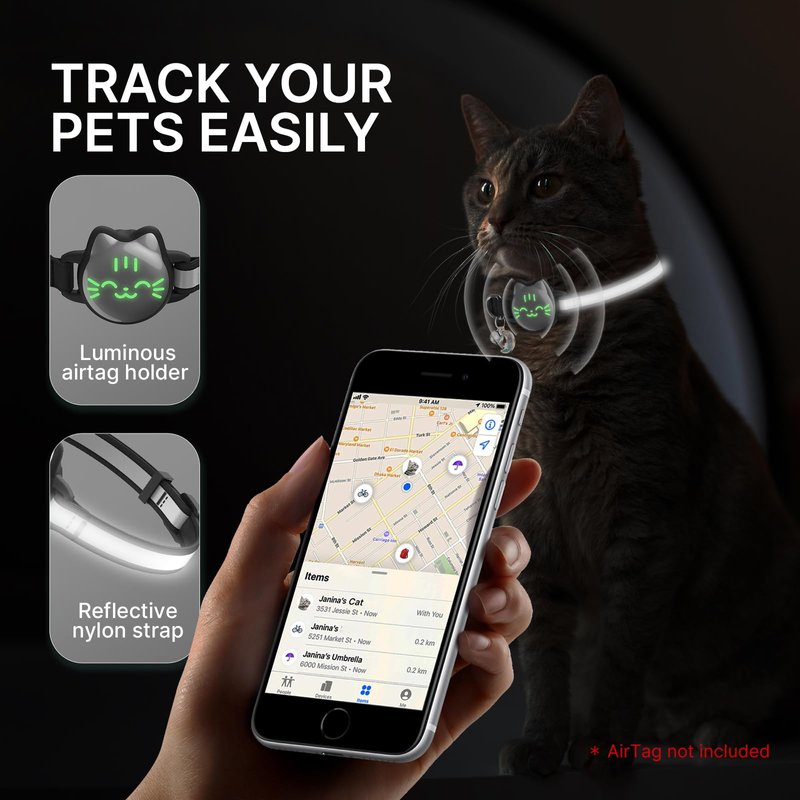 - 【ENHANCED SAFETY FEATURES】The Cat collar for Airtag features a breakaway buckle and a safety elastic band to prevent any risks of suffocation or accidents. The reflective strap and Luminous pattern ensures visibility during nighttime activities, and the hidden mode offers added security.