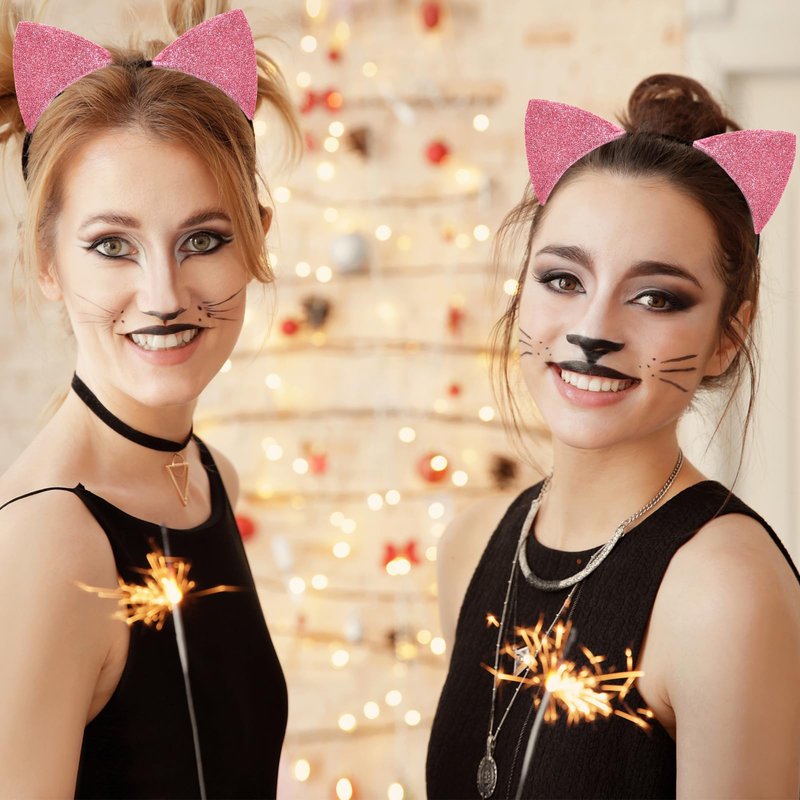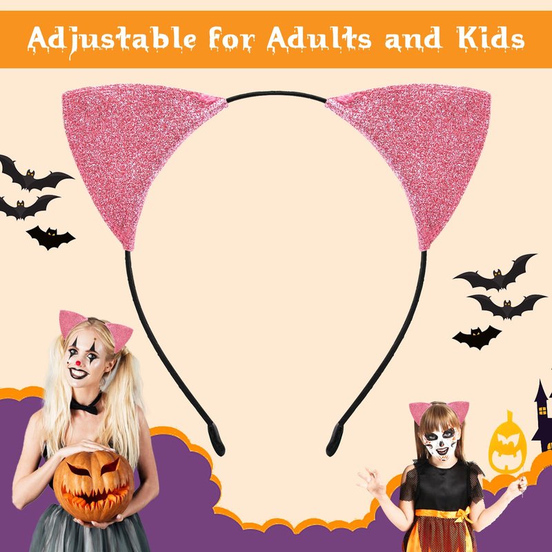 Cat Ears Headband for Women Girls - Cute Sparkle Glitter Hairband Halloween Cosplay Cat Costume Hair Accessories for Adult Kids Birthday Daily Wear Pink