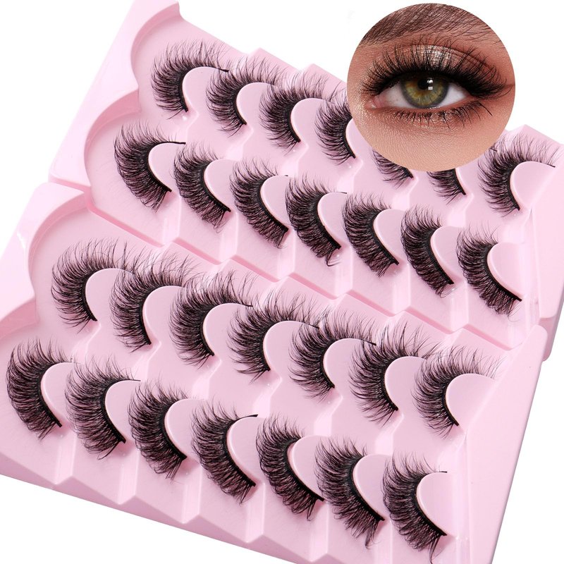 Cat Eye False Eyelashes 14 Pairs 6D Volume Natural Look Fluffy Wispy Lashes 15mm Eye Lash Extensions Strip Fake Eyelashes Pack