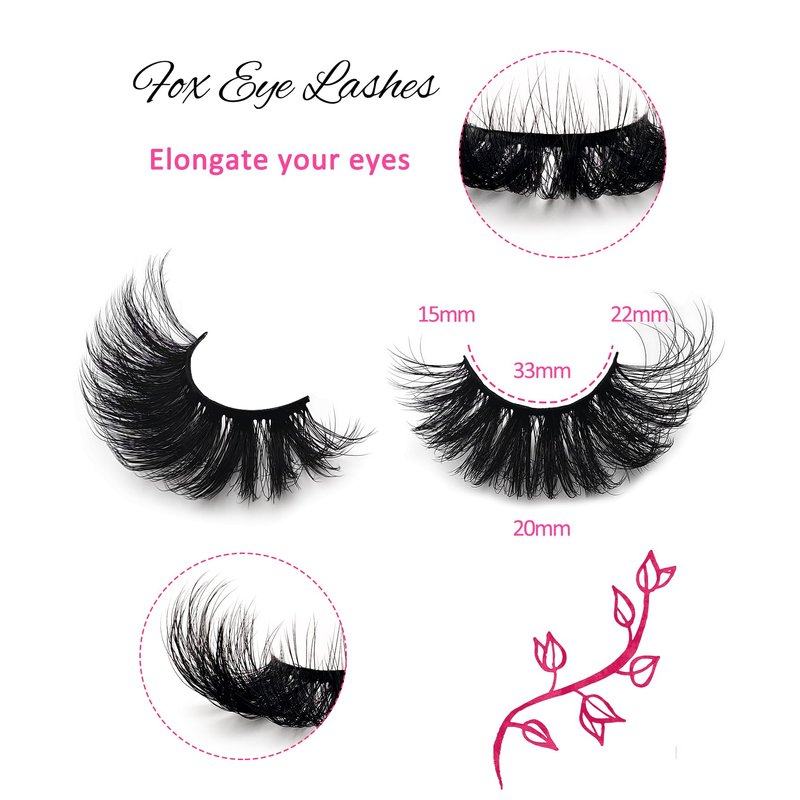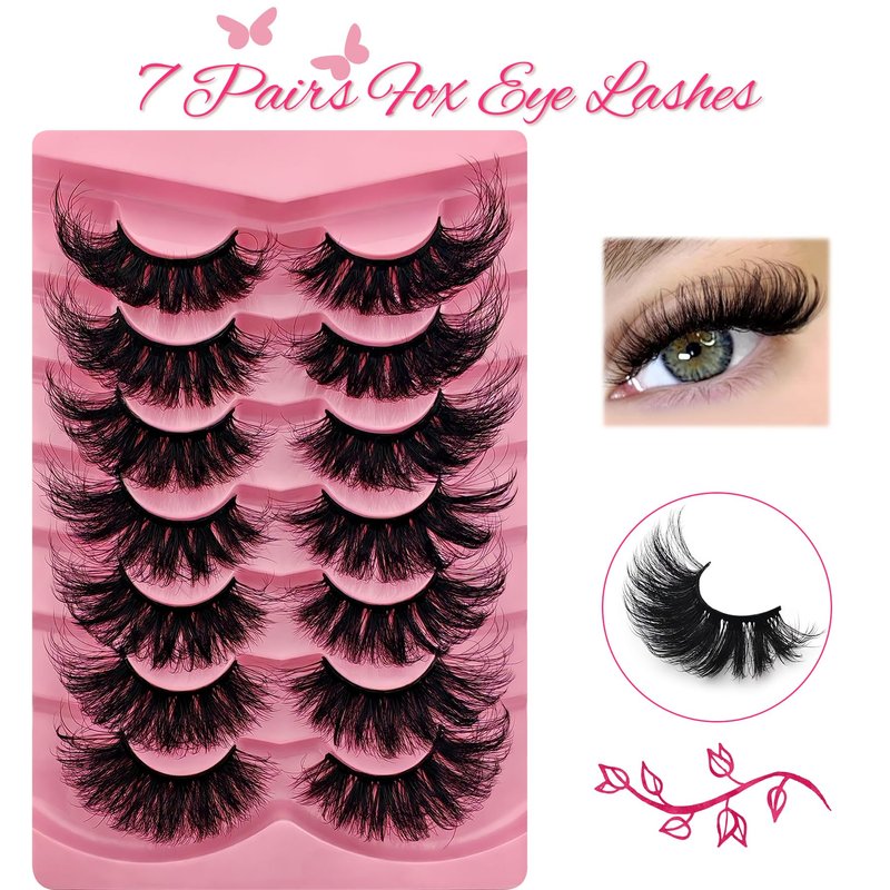 cat-eye lashes mink flu-ffy 15mm 20mm fox eye long lashes 3d volume curly lashes thick full dramatic eyelashes wispy faux mink false eyelashes fake 7 pairs pack