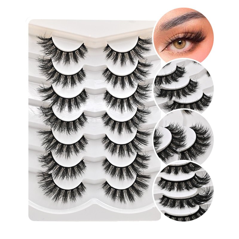 Elevate your makeup game with these high-quality faux mink lashes. This set includes 7 pairs of fluffy, wispy eyelashes that provide a natural, voluminous look. The lightweight lashes are designed for comfort and easy application. With their 6D volume and cat eye style, these lashes will enhance your eyes and give you a glamorous, eye-catching appearance. Get ready to flutter those luscious lashes and turn heads wherever you go. Suitable for all occasions, from casual days to special events. Achieve a stunning, flirty look with this versatile lash set.