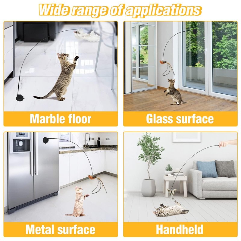 - 【Product Upgrade】1. The upgraded version of the suction cup is designed with an air valve switch and a sticky base (reusable, you can restore the stickiness of the base by cleaning the base), the suction is stronger and it is not easy to fall. 2. The upgraded cat stick adopts the shape of a bamboo pole, which is integrally formed, and is not easy to break or run out, which is different from ordinary cat toys on the market.
