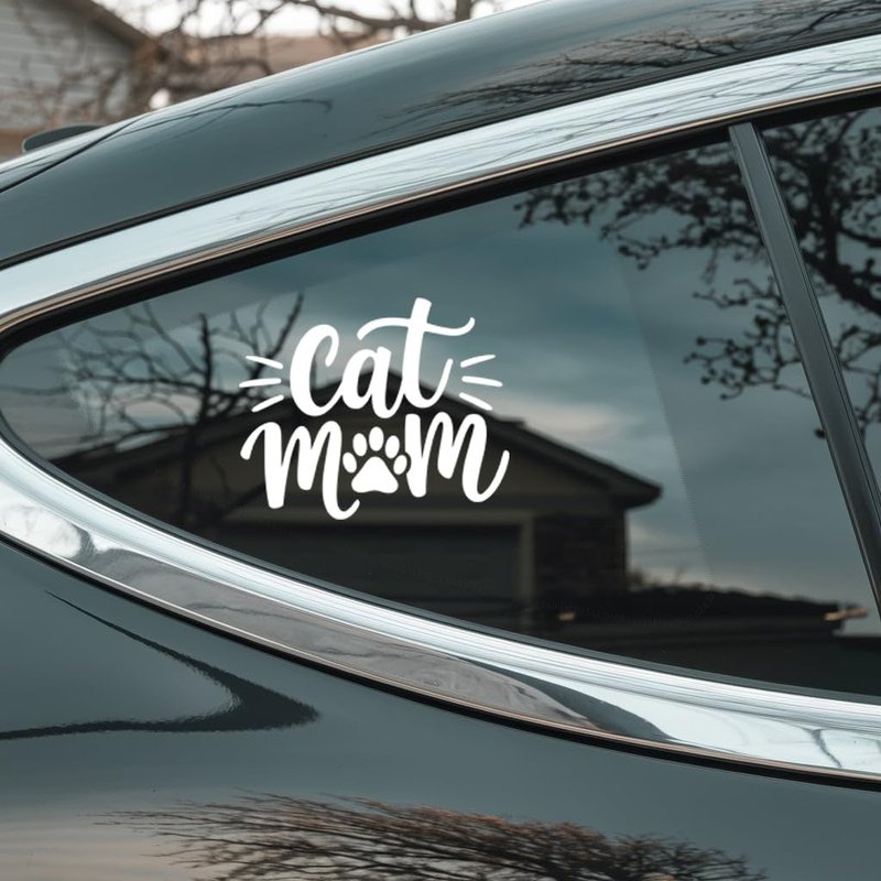 Cat Mom Car Decal - Stickers for Laptop - Durable Vinyl Car Decal - Easy to Apply and Remove - Outdoor and Indoor Use - Adds A Personal Touch to Your Ride