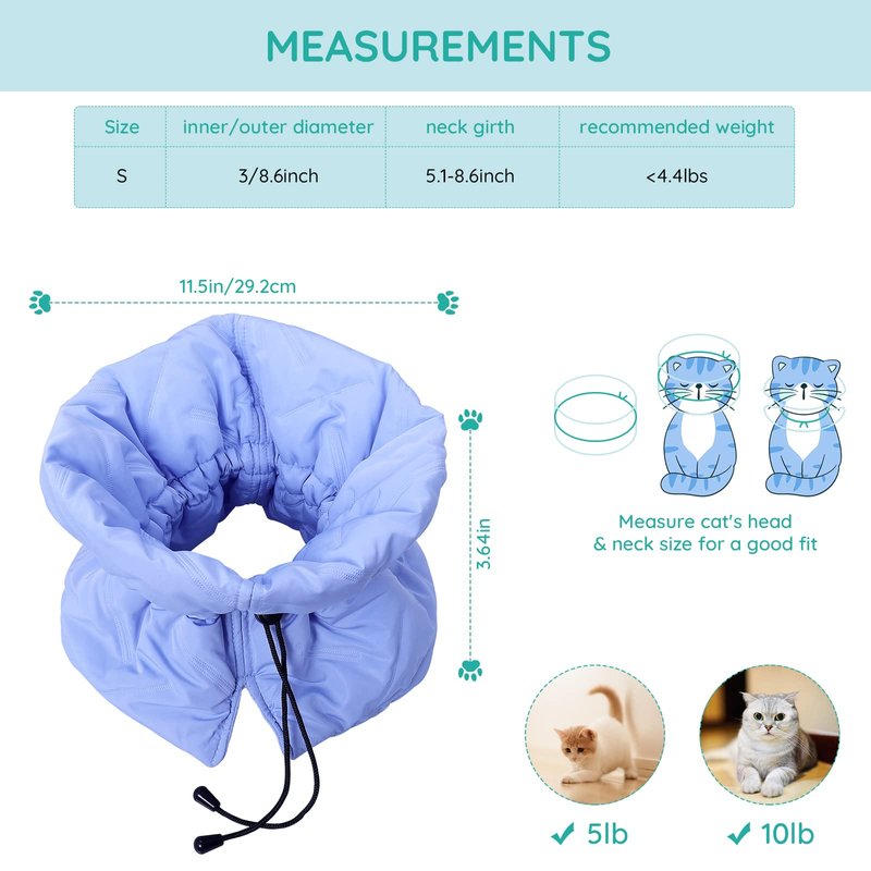 - 【Size Note】S sized recovery cone suitable for 4-10 lbs. Best fit neck girt 6.3"-9.1" and is 3.9" depth. Please carefully measure the neck size and the size from the neck to the snout of your pet, make sure you get the right size and play a protective role.