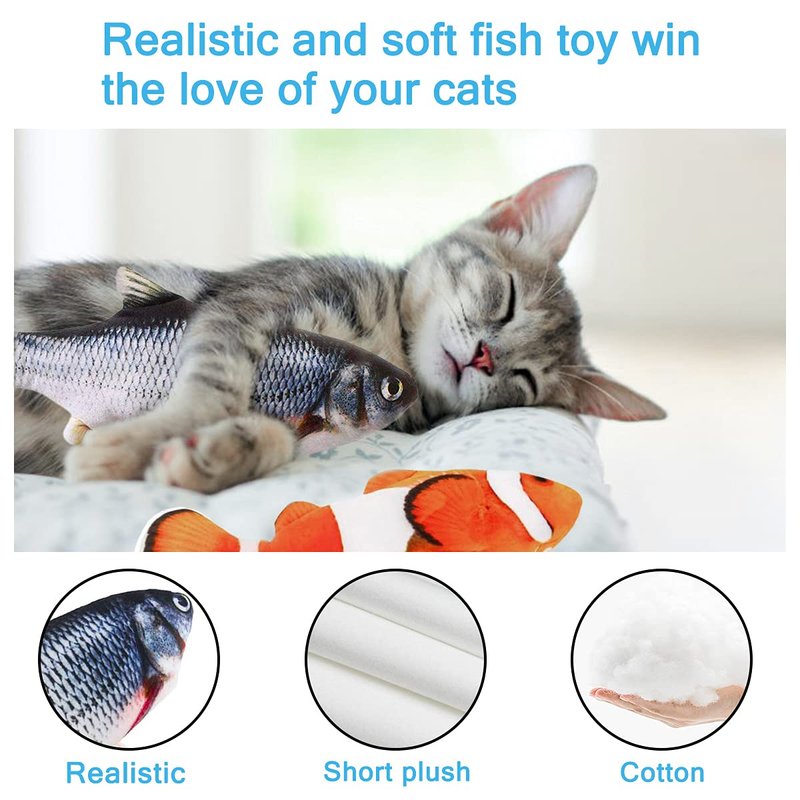 - 🐟 What You Get - 2Pcs Cat Fish Toys. Tocirelo insists on the best quality and service. If you are not satisfied with our flopping fish cat toy, you can refund or replace it. If you have any other questions, please feel free to contact us, we will answer your within 24 hours.