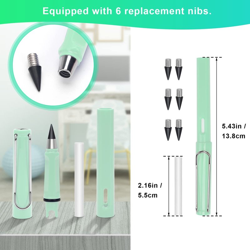 - 【3PCS in Beautiful Colors】: A set contains 6 replacement nibs and 3 pieces of eternal pencil in bright colors. Long enough to use and replace, exquisite and practical gifts to share with your family and friends