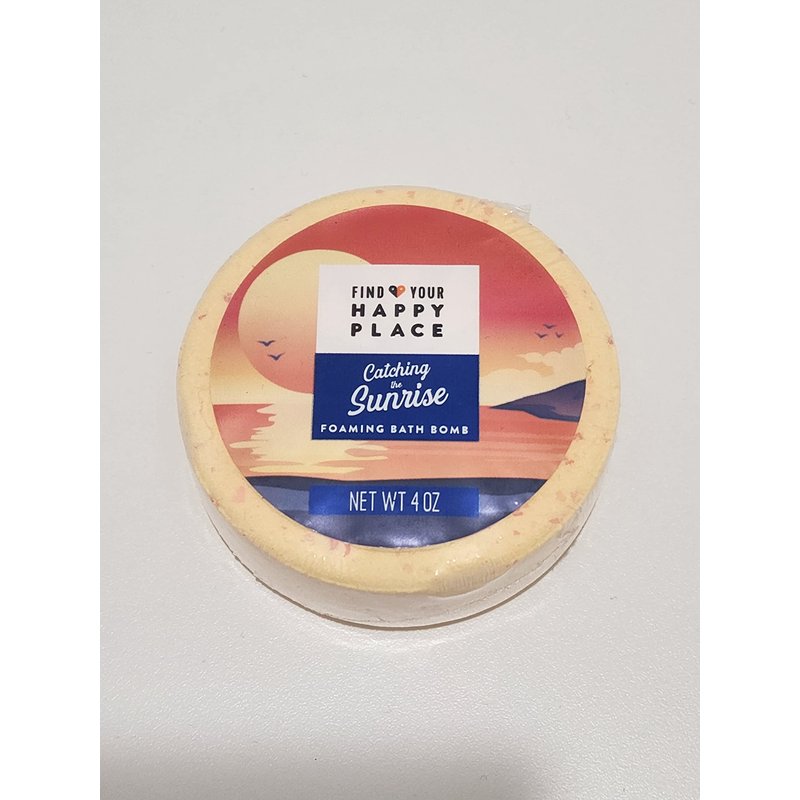 Find Your Happy Place Catching the Sunrise 4 oz Foaming Bath Bomb with notes of mango & sparkling citrus. Place in warm bath and enjoy. Rinse thoroughly with water.
