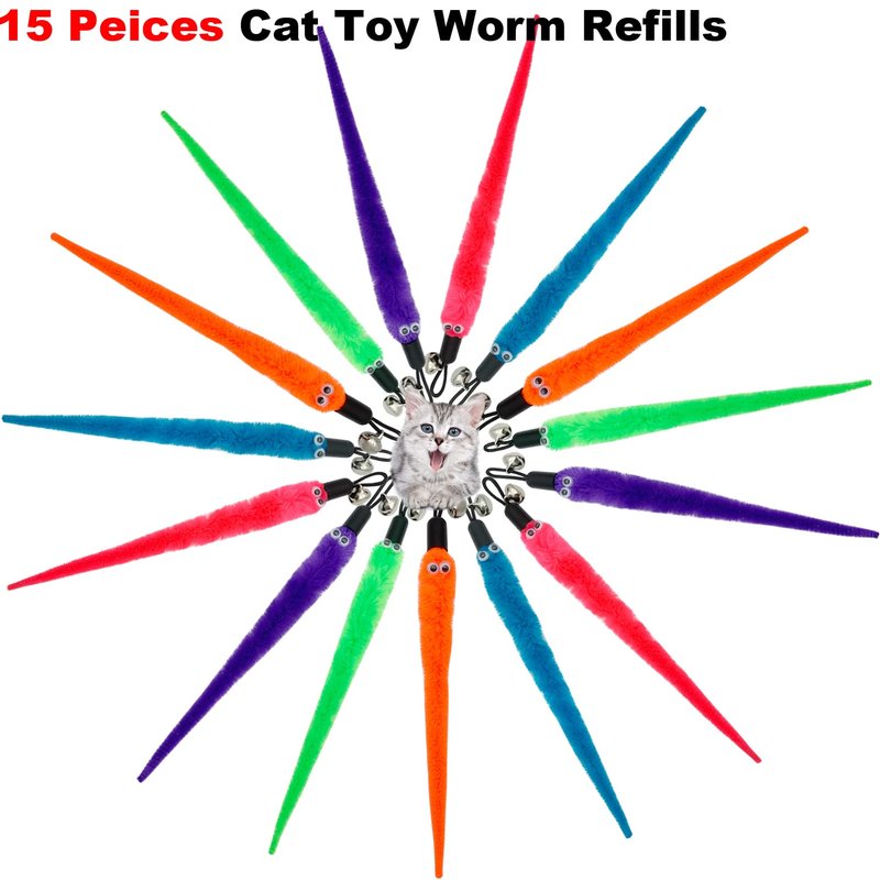 - 2.Great Value Cat Wand Refills: Include 15 pieces colorful worm toy replacement, Used on any interchangeable cat wand and chaser toy with an eye hook connector, It can be used for a long time for your cats to play. Now you don't have to keep buying wands when all you need is a new attachment