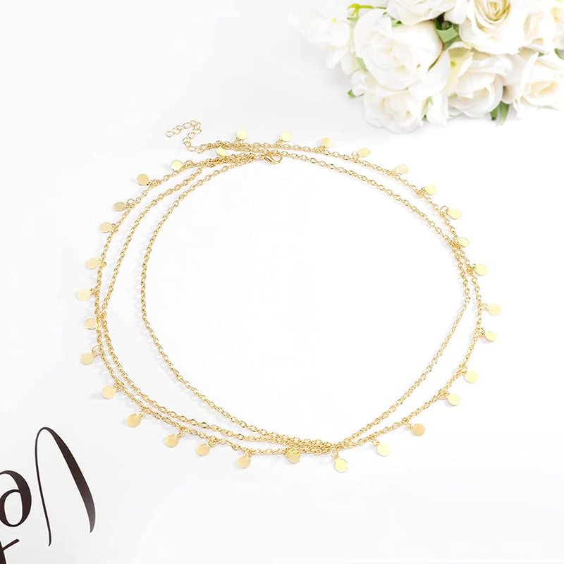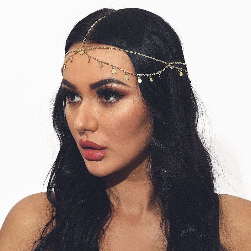 - Gold head chain jewelry is great quality alloy and sequins ,gold color for choose,it will retain color for months and not fade.