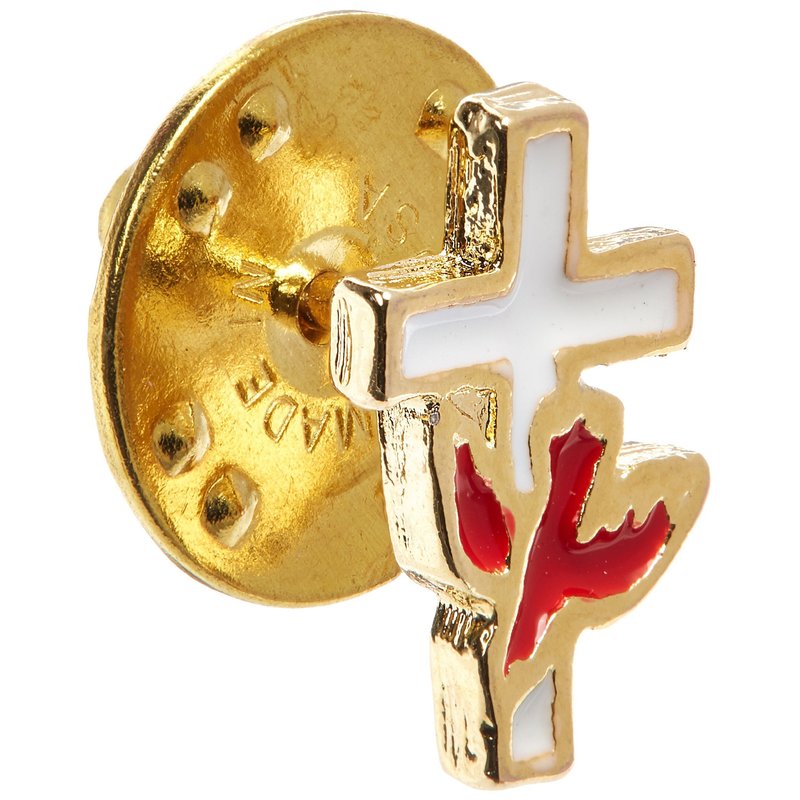 Cathedral Art (Abbey & CA Gift Red Dove on White Cross Inspirational Lapel Pin, One Size