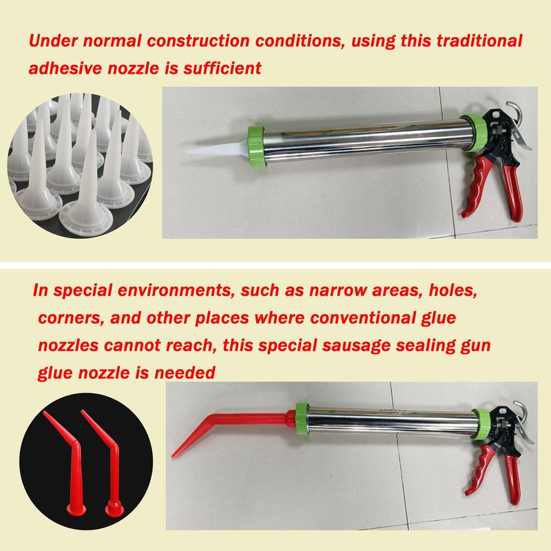 - The caulking nozzle of this set of caulking guns can be used for kitchens, bathrooms, water tanks, doors, windows, sinks, seam filling finishes, etc. Can be applied to the construction and industrial sectors. Standard threaded base, widely used for replacing caulking gun nozzles, universal thread compatible with most caulking guns on the market