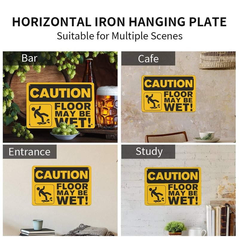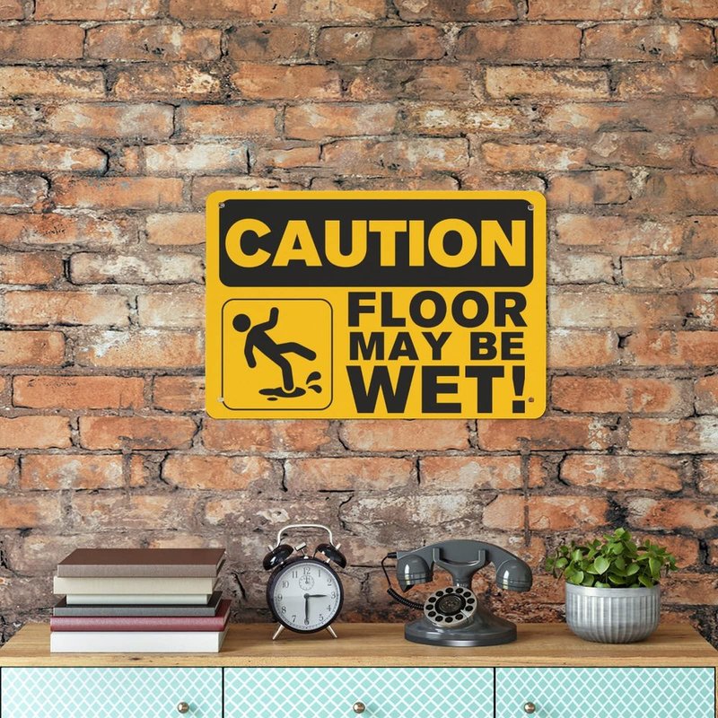 Caution Floor May Be Wet Sign, 8"x12" Aluminum Tin Sign, Outdoor Caution Sign Metal, Easy to Mounting, Indoor or Outdoor Use for Bedroom Door, Made in The USA