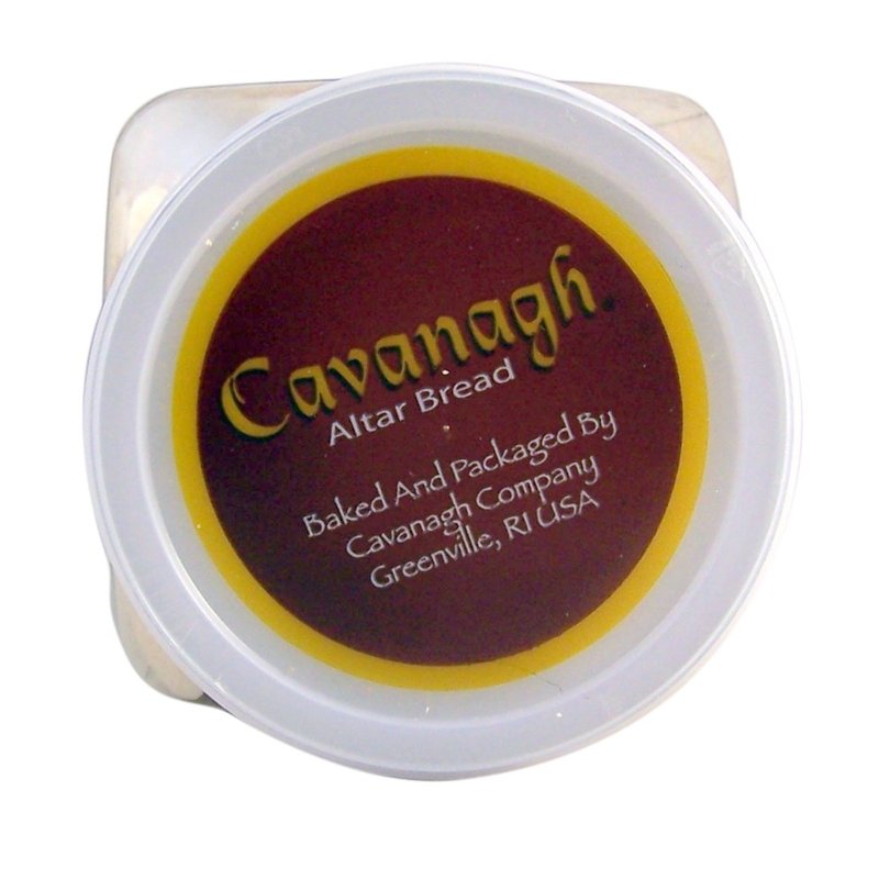 The Cavanagh Company uses baking methods established by historical liturgical guidelines, combining only flour and water for the process. The mixture is then spread between flat, rectangular plates that compress the mixture as the plates move through a gas-fired oven. These ovens produce rectangular sheets of wafer-thin bread, which are then passed through a humidifier for dampening, enabling the bread to be cut into circles without crumbling. As the bread is cut, it passes under a turning drum of dyes that incise the wafers with religious symbols.