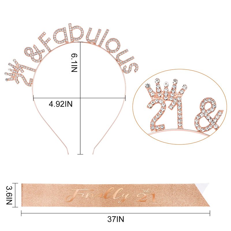 - One Size Fits All-The birthday sash is 63.77 inches long, and our sash fits all types of bodies. The Happy Birthday set comes with pins to adjust the size of the finally 21 sash. The width of the birthday headband can be stretched according to your head.
