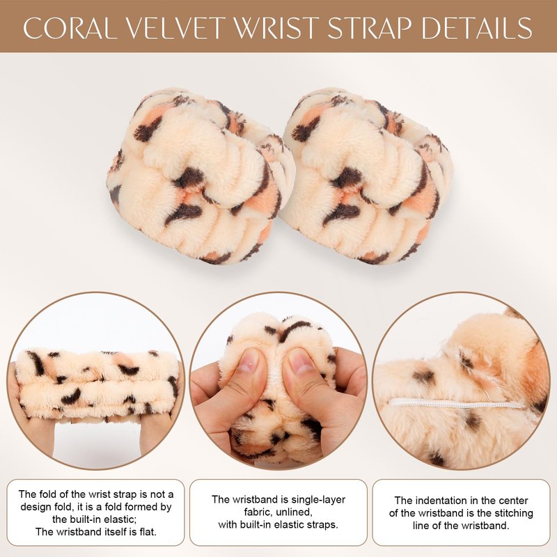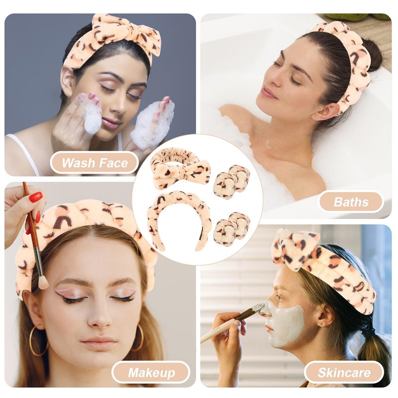 CAVETEE Hairband Set, 6 Pack Spa Headband for Washing Face, Makeup Headband with Wristband for Women, Soft Velvet Fabric, Perfect Size, Leopard Print