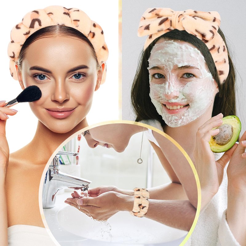 - 【Face Headband Set】This skincare accessory prevents hair from falling in front of your face, provides a dry barrier for your hair while you wash your face, and a wristband prevents liquid from splashing onto your arms. The cute headband can also be used as a yoga headband, which keeps hair neat.
