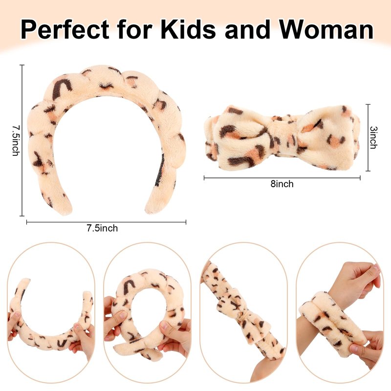 - 【6-in-1 Makeup Headband Set 】: This face wash set comes with 1 bubble headband, 1 cute bow headband and 4 wristbands. This face wash headband set has everything you need for your daily life . And you can use it with friends and family.