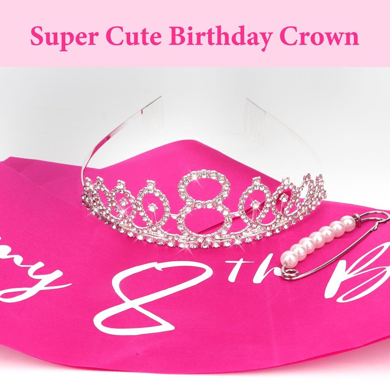 - The Perfect 8th Birthday Crown for Girl- "It's My 8th Birthday” Sash + Rhinestone Tiara Gifts Set.