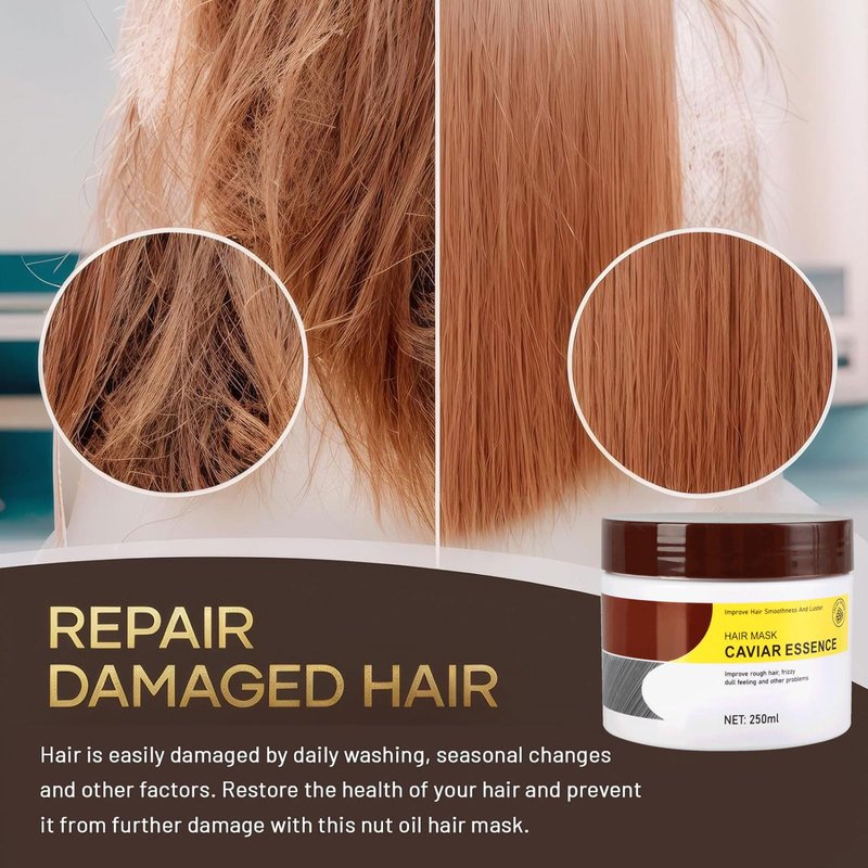 - Lntensive care:our Caviar Essence Hair Mask is not just for those looking to repair damaged hair, it's perfect for anyone looking to add an extra dose of moisture to their locks. Suitable for all hair types, it is especially beneficial for those with dry or brittle hair.