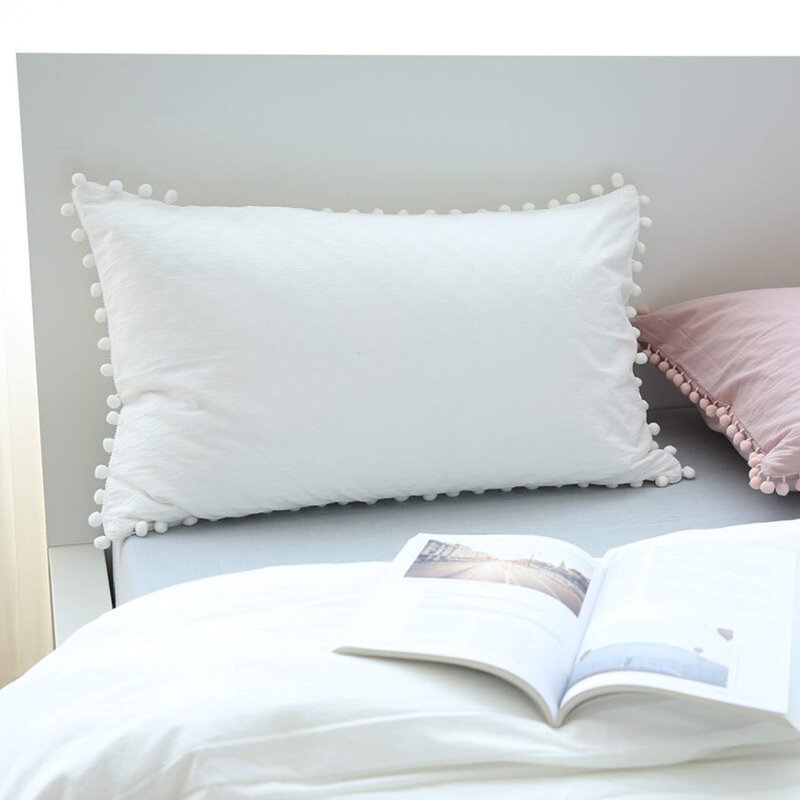 - Unique and Exquisite Design: Modern style 2 pack Pom-Fringe pillow covers, Good sewing stitch and exquisitive workmanship reduce loose threads. Superior material and meticulous sewing make high quality pillow shams for you. Pillow shams’ unique 2-inch edge design can also give you a different experience