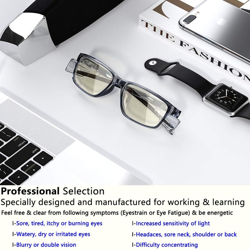 - Work Concentrate & Comfortable, Reduce Eye Strain & Glares - Enjoy your digital time while working or learning; AR coated lens helps remove blue light & digital glares, relax your eyes, alleviate eye strain, fatigue & relief headaches