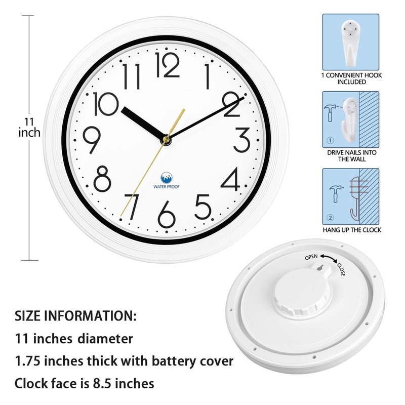 1 GUTEN 11 Inch Waterproof Wall Clock