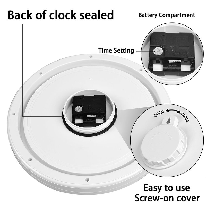 - IP67 Waterproof: Sealed clock with waterproof screw-on cover prevent water from entering the mechanism. Perfect Weatherproof clock for hanging bathroom, outside, patio, garden, fence, lanai, garage, poolside, farmhouse, yard or backyard.
