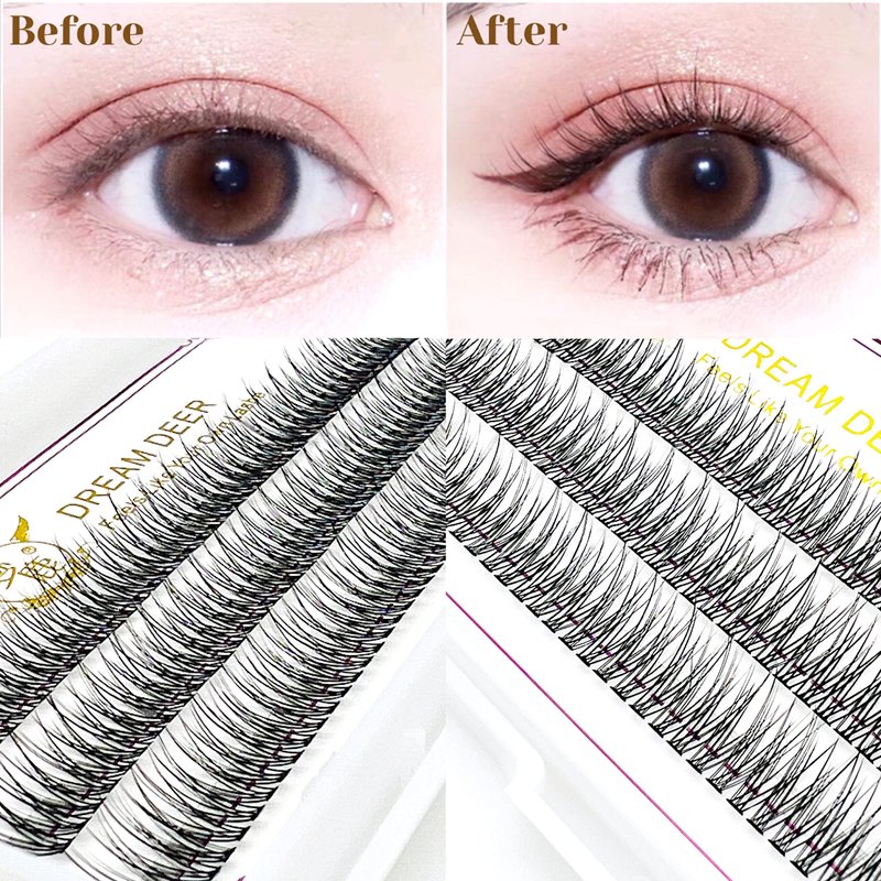 - Style: Mermaid Fishtail Design, Natural Look Cluster Eyelashes, Thickness: 0.07mm, C Curl.
