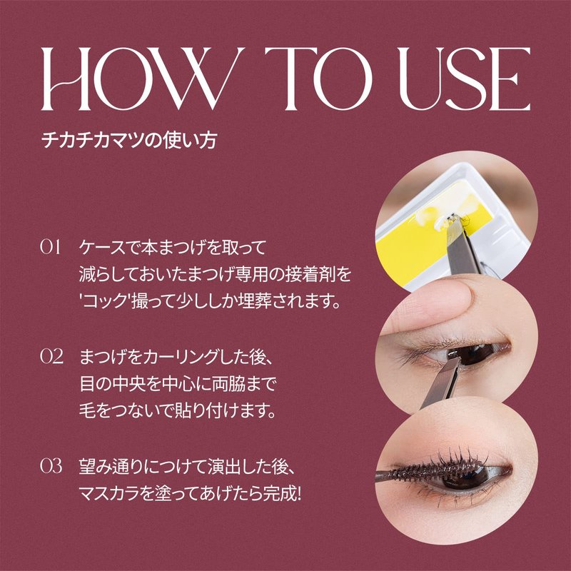 - 12 types of eyelashes with various lengths (10mm~12mm / 1Point~4Point)