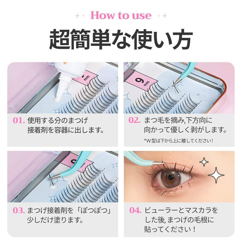 [CCAMBBAK Handmade Natural Individual Eyelashes - A, W type] ✨Welcome to CCAMBBAK's Store ▶CCAMBBAK(NORMMUND inc.) is Korea based Global Sales Company. ▶Shipping to worldwide safely and quickly. ✨Product Information ▶8 types of eyelashes with various lengths (9mm to 11mm) ▶More Easy! Faster! Depending on the purpose, simply "poke" and use it. ▶Famous makeup artist from Cheongdam-dong, the center of K-beauty. It was designed and tested by about 10 people It's the first artist's eyelashes. 🎈The reason why eyelashes are so special! Experience the six advantages for yourself. ① It does not deform easily in columns. ② The length is constant and the end of the mock is, It's sharply 'edged'. ③ not disposable, It's reusable. ④ For those who have long eyes, You can use it freely. ⑤ The curling of the eyelashes, It's natural. ⑥ If you want a pure mood, Try using it without eyeliner. ✅Check point -To make it look like real eyelashes, make the ends sharp "Edge" to make it look more natural! UP! -National Accredited Certification Authority Verification and Completion. Check the safety level as it is a product that touches your eyes directly! Blinking eyelashes are "undetected" and "safe" eyelashes of harmful substances. 🔸How to use 1) Remove the strand of eyelashes and attach them to the center of your eyes. 2) Connect the hair on both sides around the center and attach it. 3) After attaching it to the length of the eyes, I'll apply mascara with the eyelashes, If you put it on, it's done!