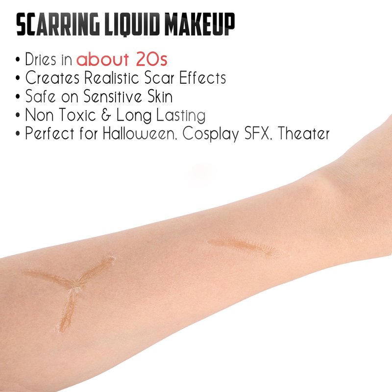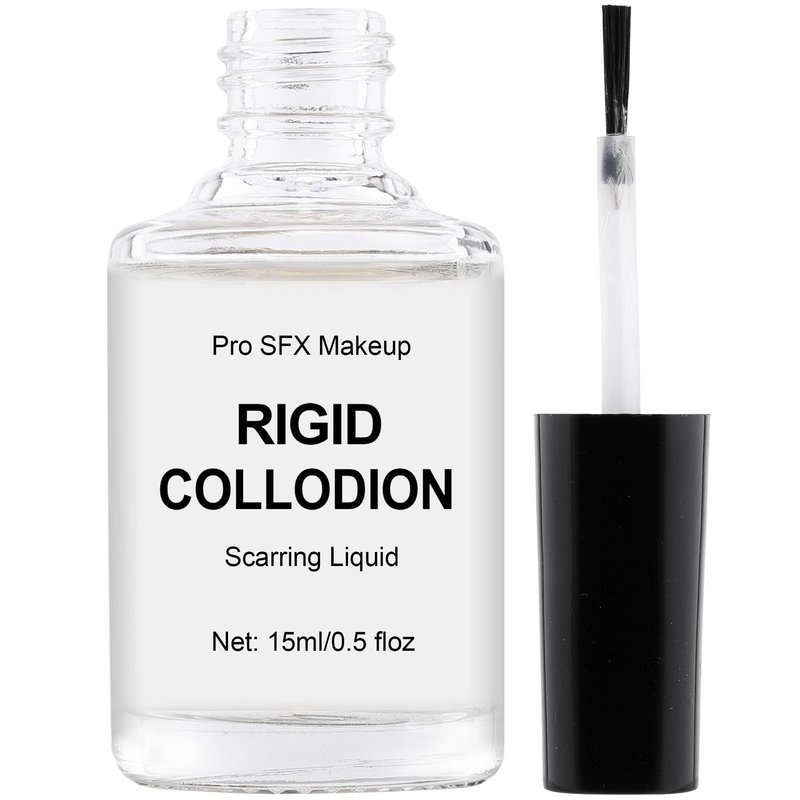 - CLEAR SCARRING LIQUID EASY TO PUCKER SKIN - Large 0.5oz (15 ml) Rigid Collodion with a brush applicator helps easy to apply a thin line to "fleshy" areas of skin first, and then increase layer for deeper scarring until reach your desired scar looks. Allow to dry between each layer. Can be used on face and body. Simply take off with SFX Makeup Remover