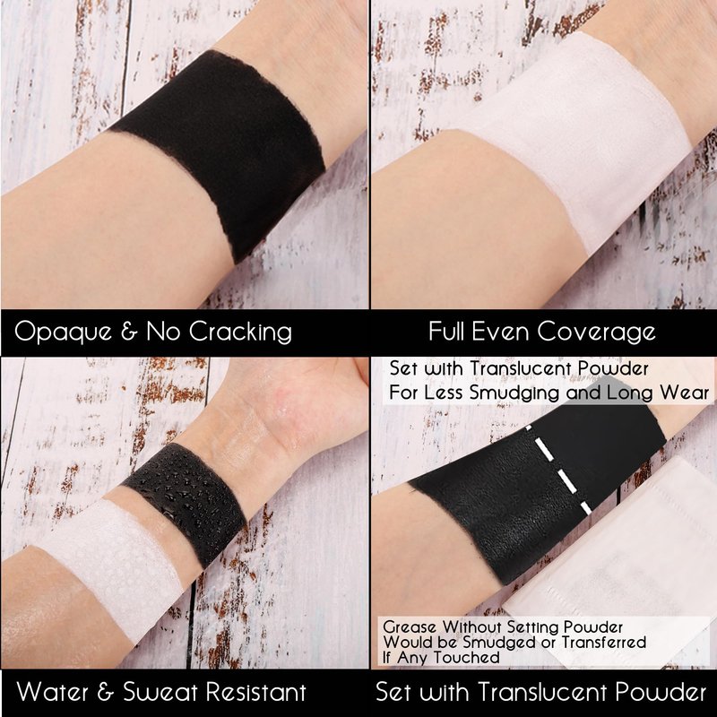 - π PRO HALLOWEEN MAKEUP BLACK WHITE FACE BODY FAINT- Black and white face paint stick are grease formula with waterproof matte finish. Ultra blendable, buildable with brush, sponge or fingers. Highly recommend to seal with setting powder for getting longer wear makeup and less transferring and smudging.