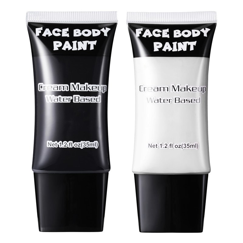 CCbeauty White & Black Face Paint, Cream Face Painting Kit, Professional Water Based Body Paint, Full Coverage Foundation Makeup, Halloween SFX Makeup For Clown Joker Mimes Skeleton Vampire Costume