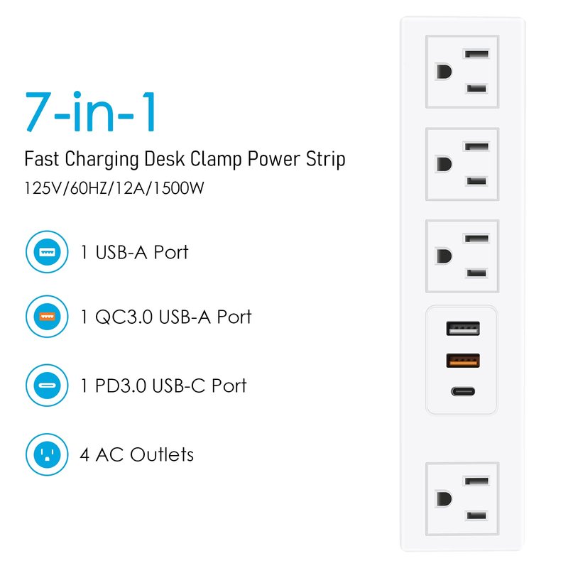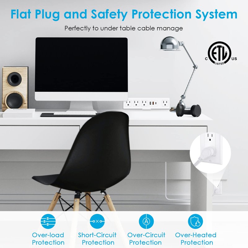 - Safe desk mount outlet strip with ETL listed, made of ABS and fireproof material, short-circuit, grounded, overload, over-voltage protection safety system. Please check whether each port is working properly before use.