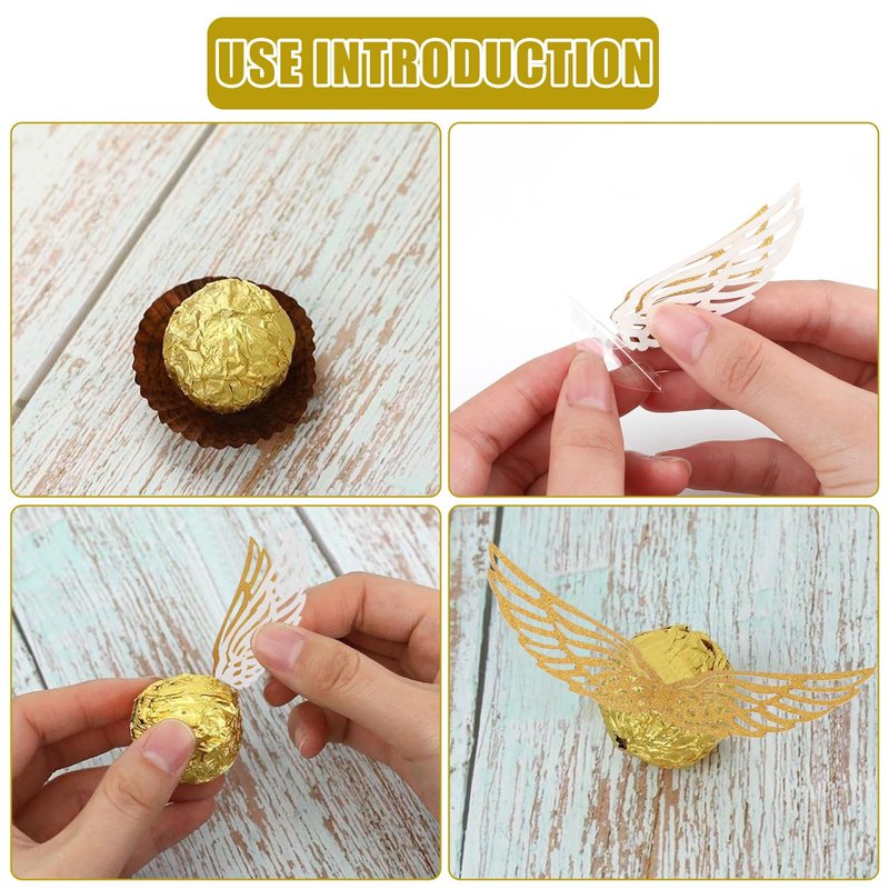 - Value Pack:You will receive 50 pcs gold glitter wings for chocolate decoration with 50 pcs glue point dots,easy to use and perfect decor for themed party.