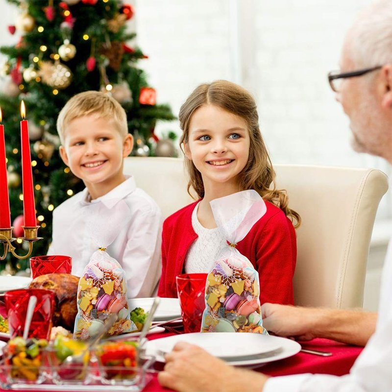 - Value Pack: 120pcs Christmas cellophane treat bags and 150pcs metallic twist ties are included.Easy to seal securely bags without requiring adhesives.