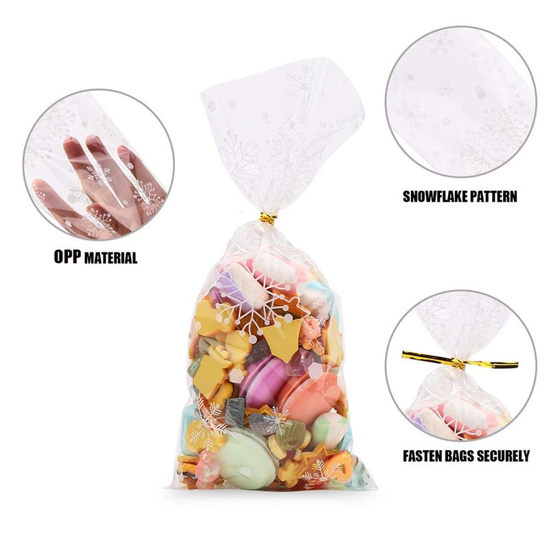CCINEE Snowflake Treat Bag,Christmas Cellophane Bag with Twist Ties Candy Cookie Bags for Party Supplies,120PCS